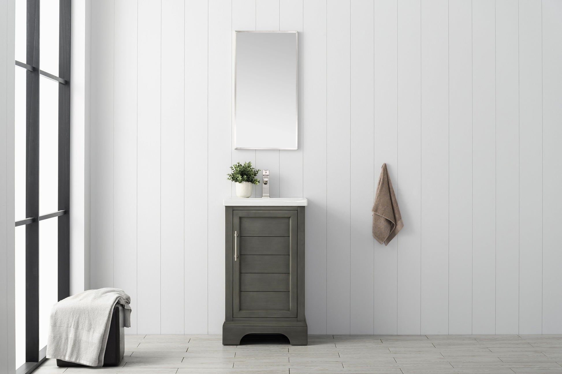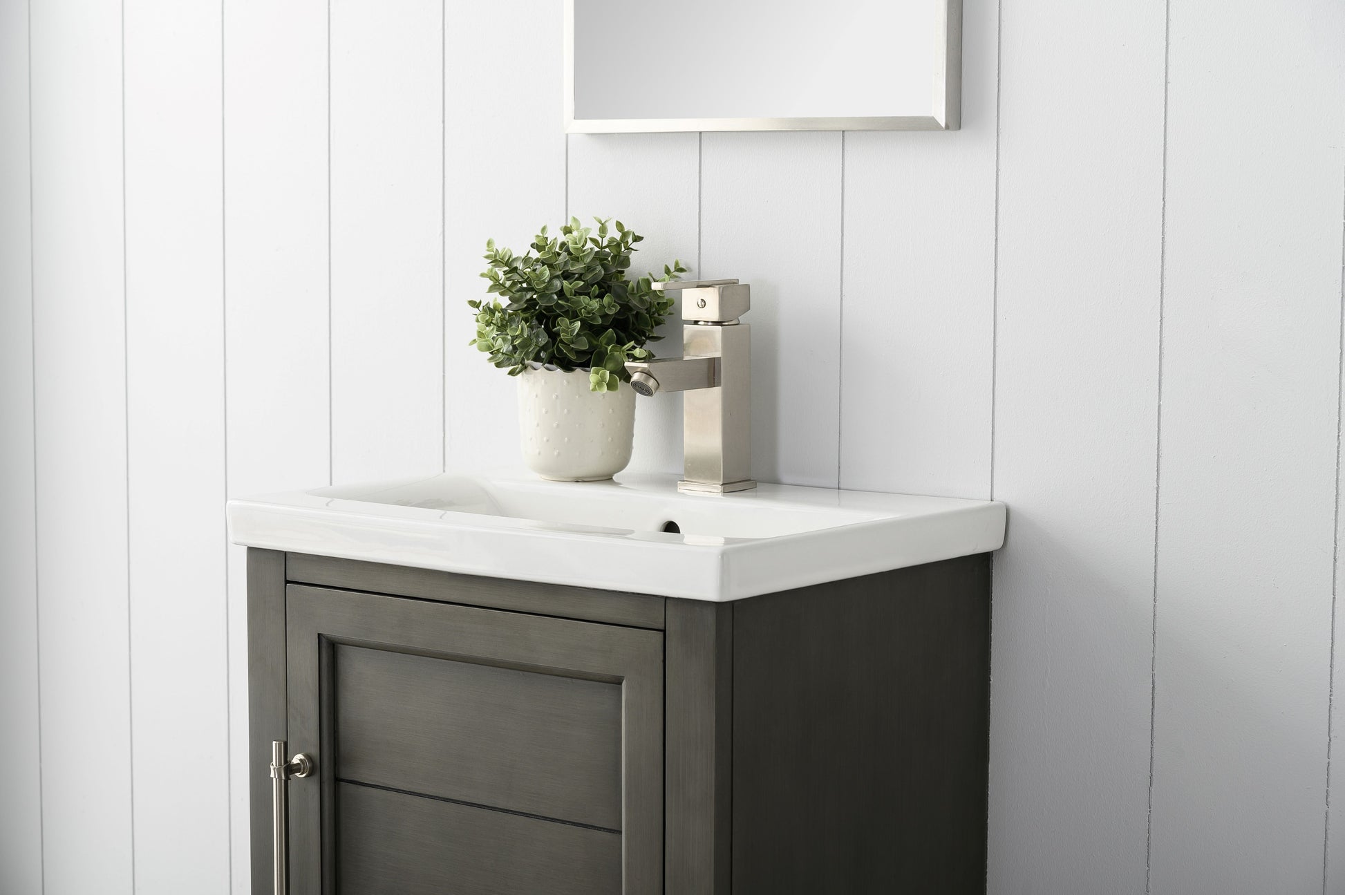 This 20" Modern Farmhouse vanity effortlessly combines classic and modern design. It boasts a ship-lap texture with a durable finish and soft-close hinges. All hardware included for installation. All details expertly crafted for a timeless addition to any bathroom.