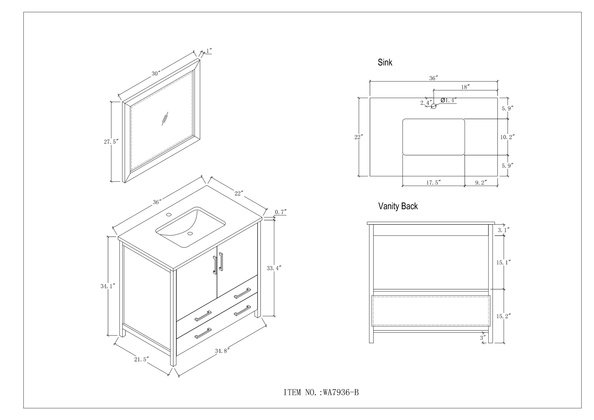 Included in purchase: Handle, Top, sink bowl, mirror, and Vanity