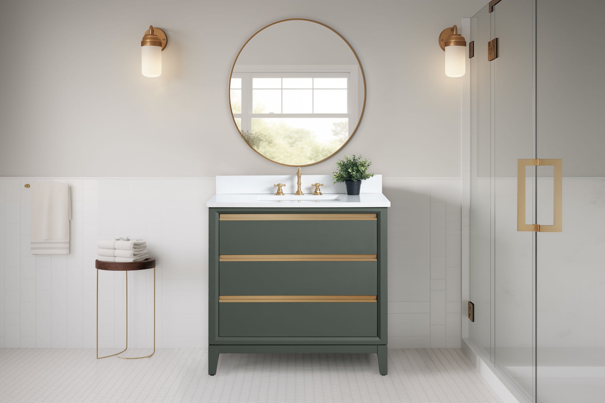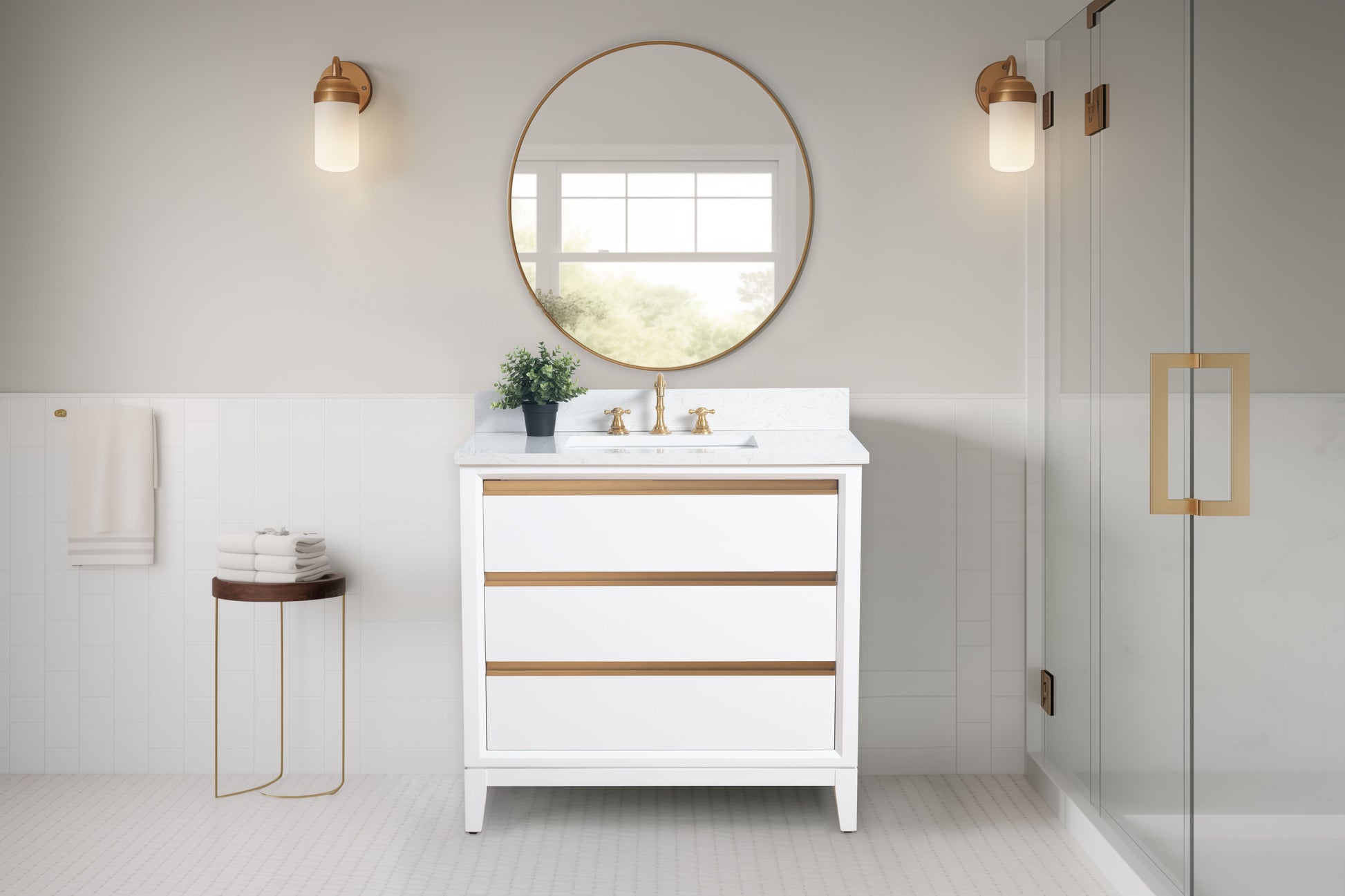 With its 36 inch size, single sink, and spacious drawer storage, the Lindsay Vanity offers the perfect combination of functionality and style. Its color and metal hardware accents bring a touch of elegance to any bathroom, while the engineered stone vanity top ensures durability. Blending modern and classic design, this vanity is a must-have for any upgraded bathroom design.