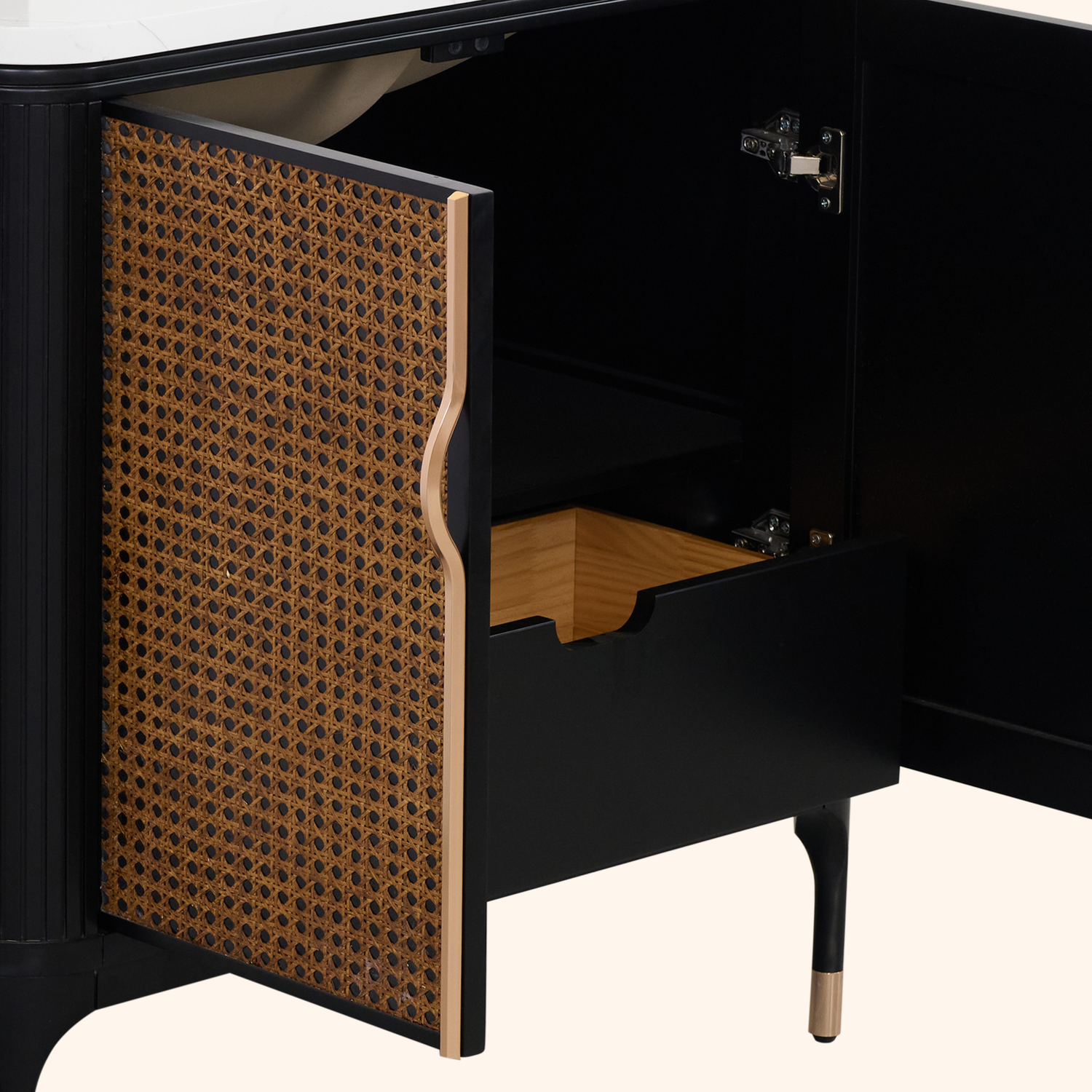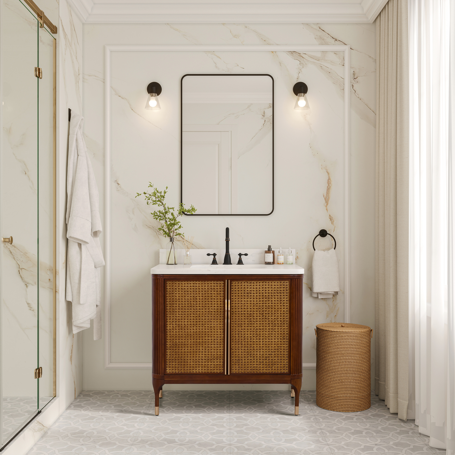 Crafted with a mid-century modern design, this 36" single sink adds texture and detailed accents to your bathroom. A unique piece that combines both style and functionality, making it a perfect addition to your home. Enjoy the benefits of a high-quality product with a touch of timeless elegance.
