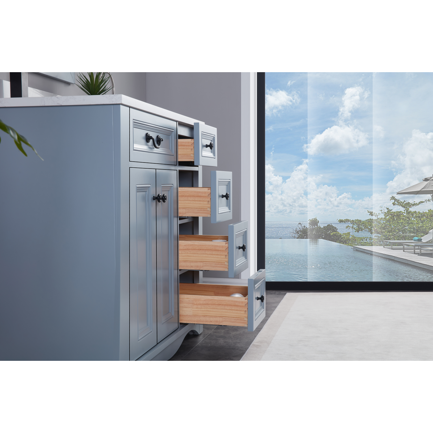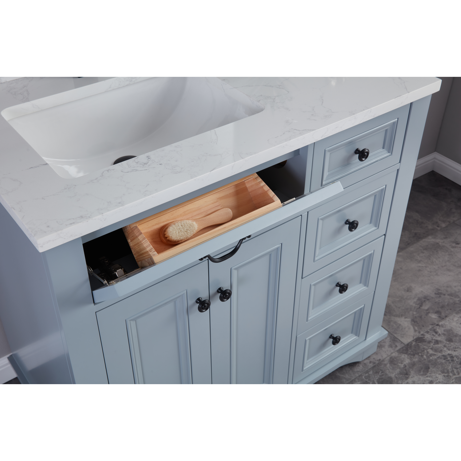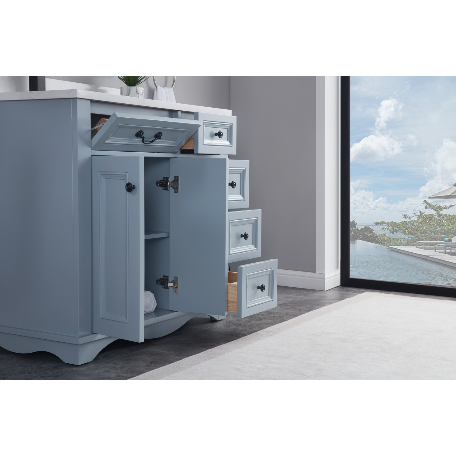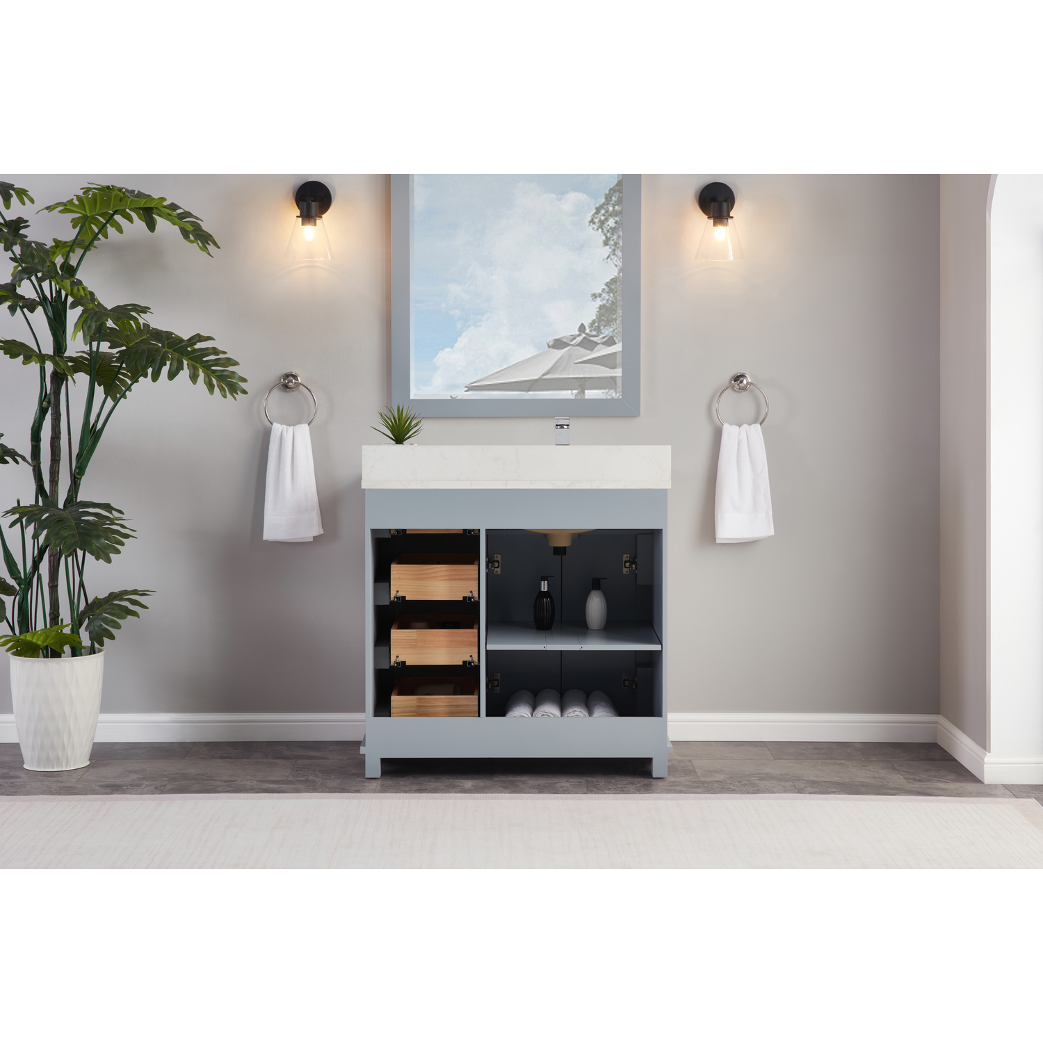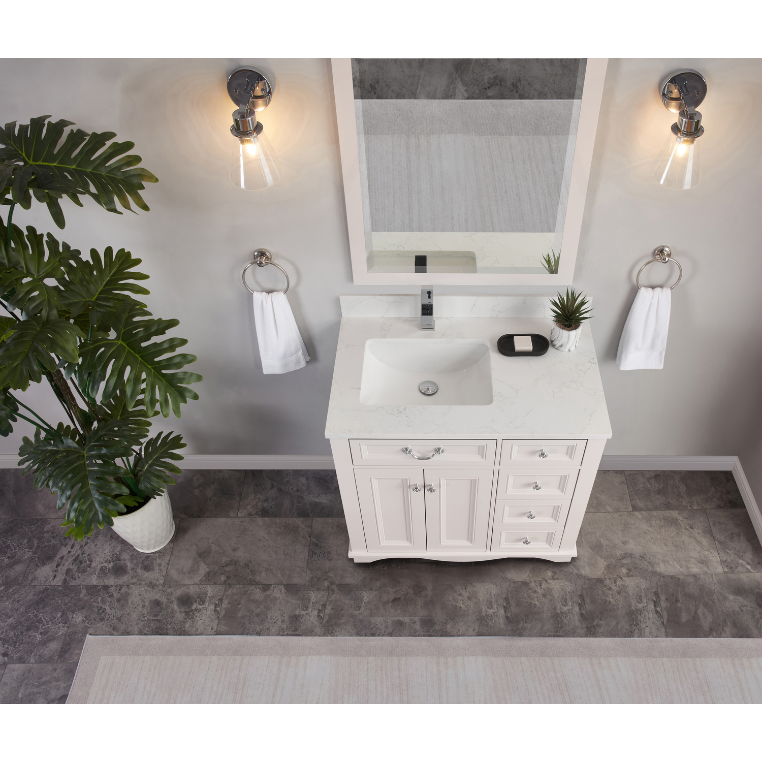 Expertly designed with a sweet, scalloped toekick and a detailed, engineered top, our 36" Scalloped Vanity boasts both charm and functionality. The single sink allows for efficient use of space, making it a perfect addition to any bathroom.