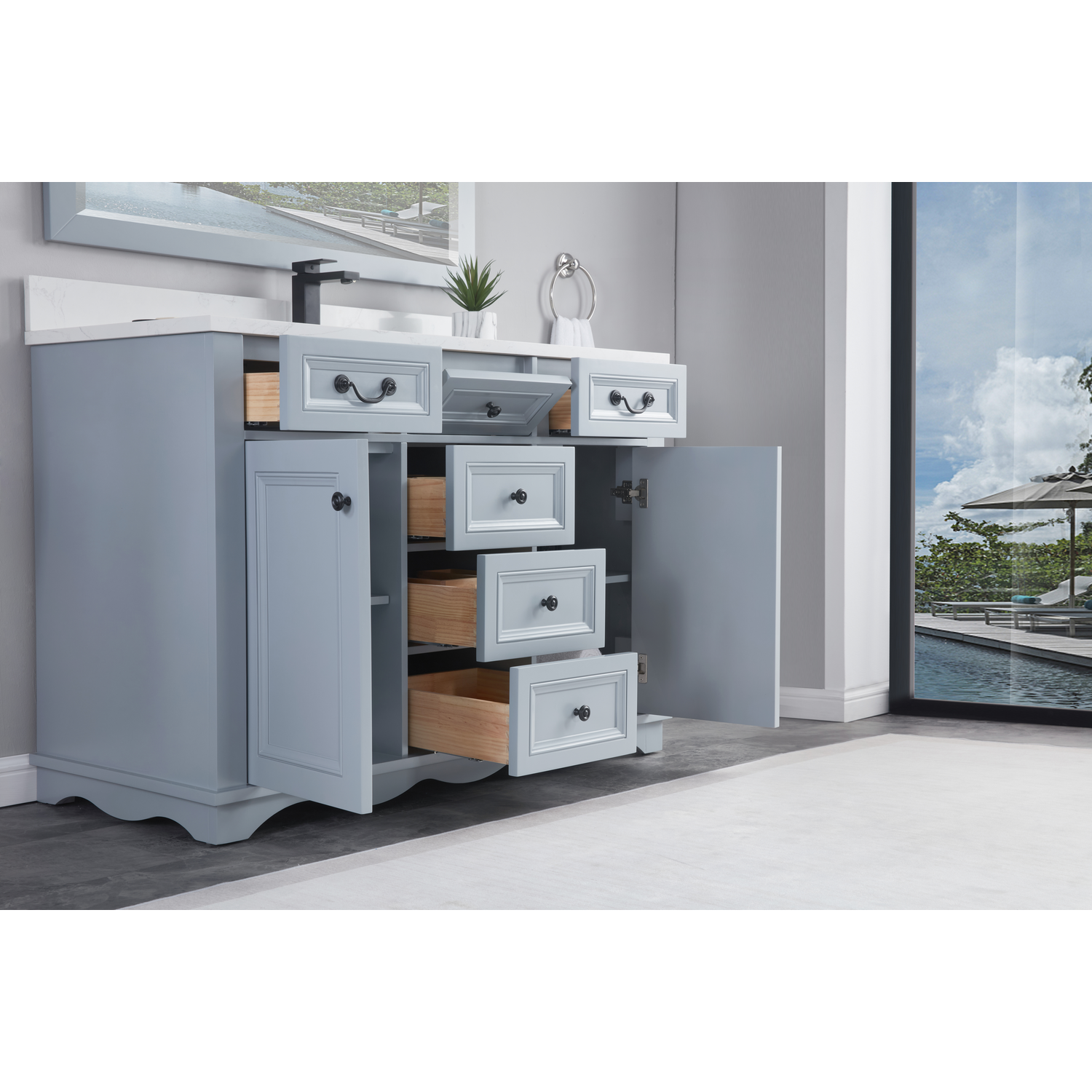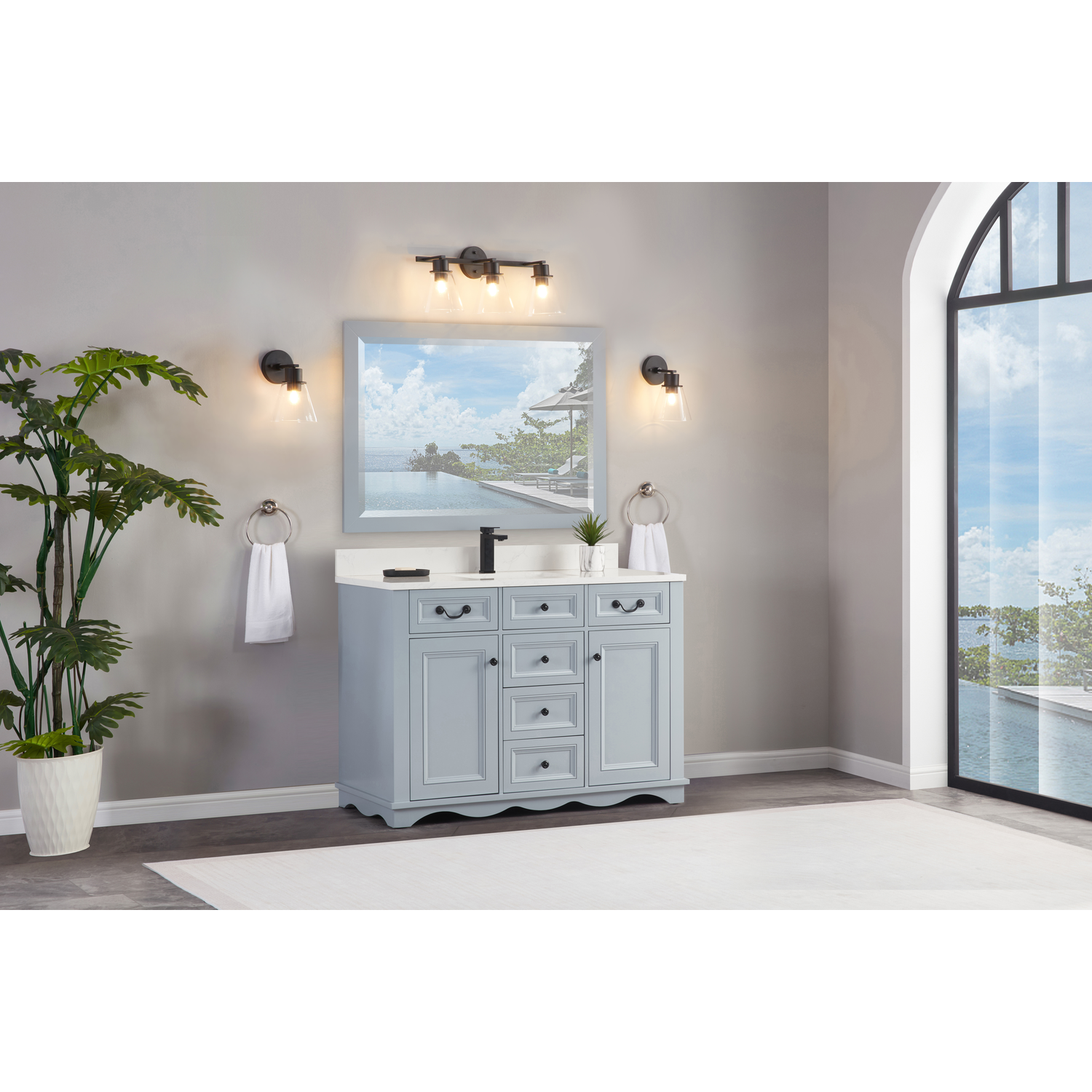 Enhance your bathroom with the elegant and sweetly scalloped design of our 48" vanity. With a single sink and ample storage, this vanity combines style and functionality for a luxurious experience. Perfect for those who appreciate both beauty and practicality.