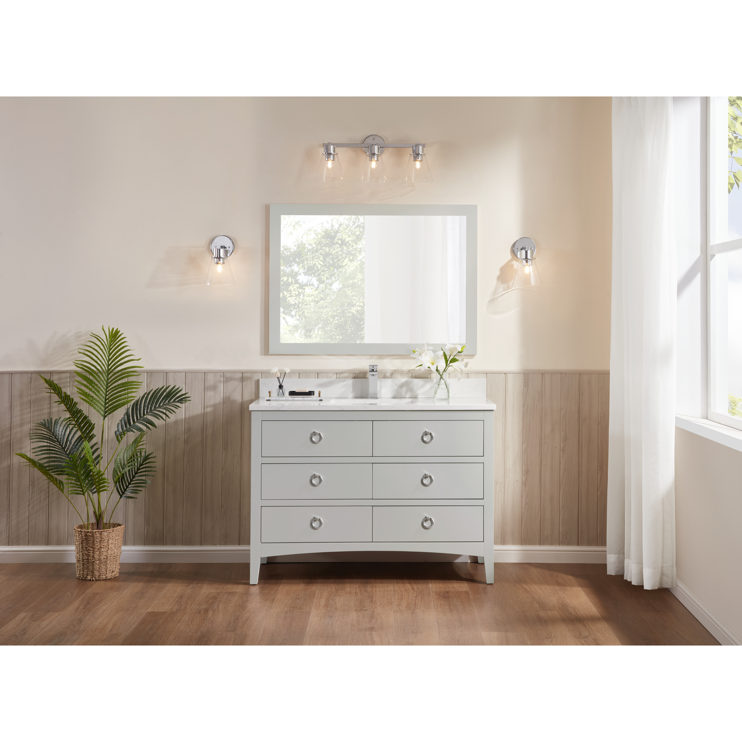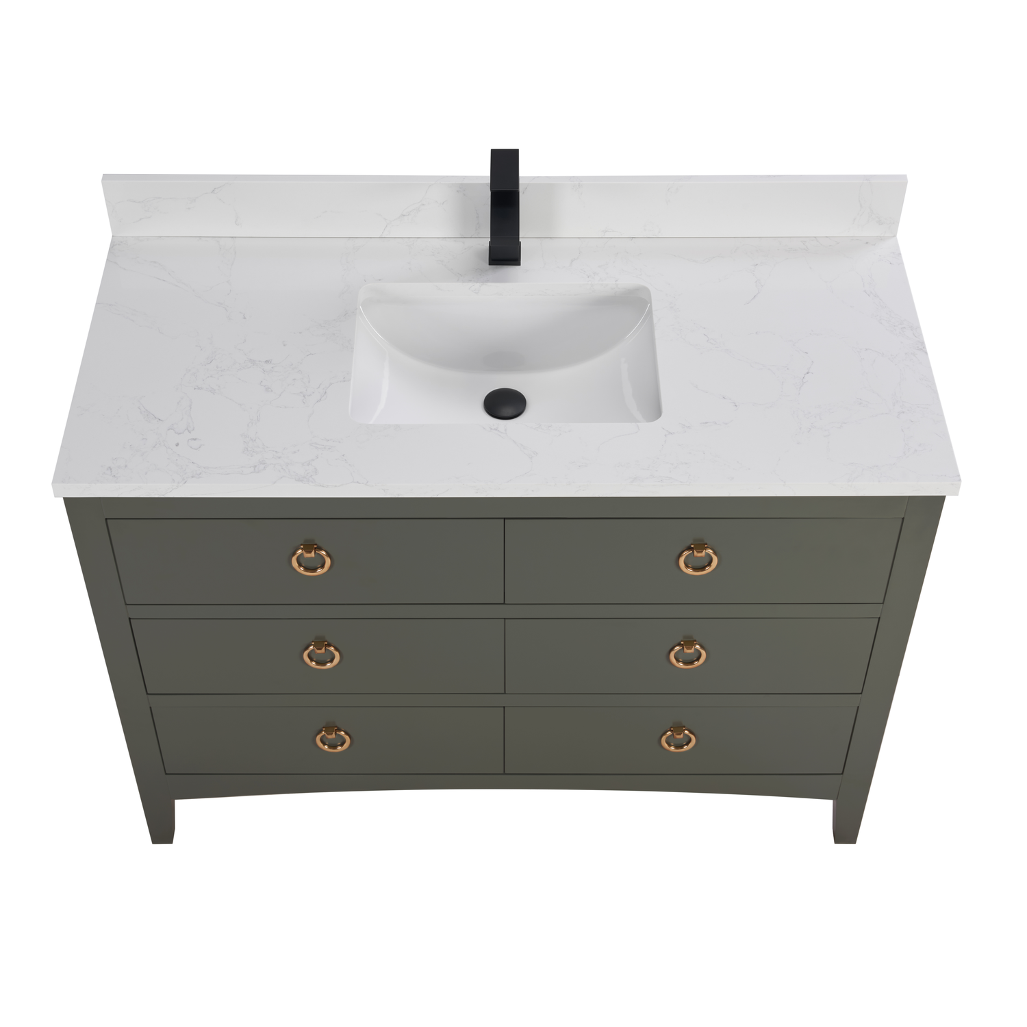 Crafted with solid wood and an engineered top, the 48" Timeless Vanity offers timeless elegance and durability. Featuring a single sink and spacious drawers, it provides practicality without sacrificing style. Perfect for any bathroom, this vanity is a must-have for those seeking a sophisticated and functional addition to their home.