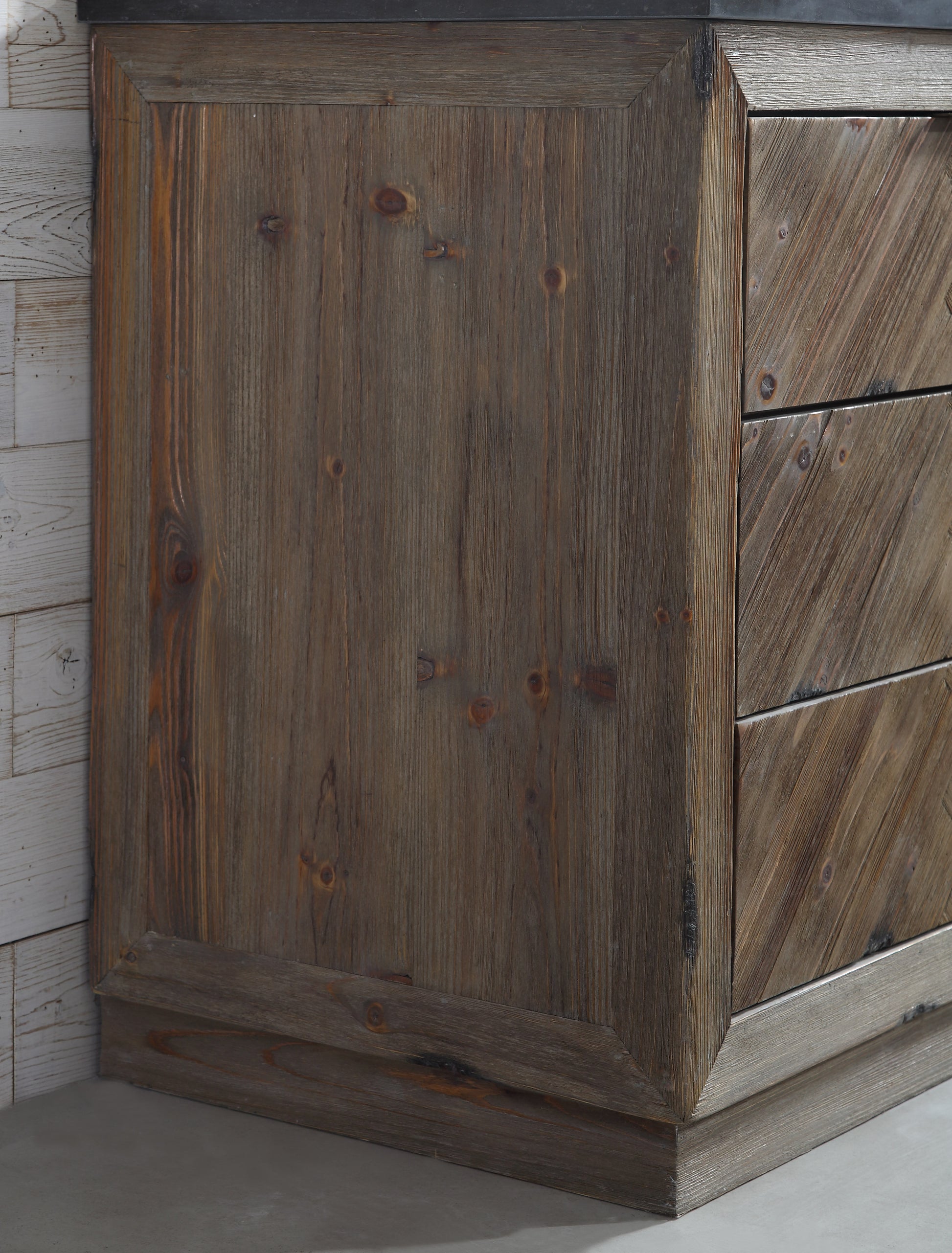 Experience a unique design for your bathroom with this rustic brown finish vanity. The moon stone top adds an elegant touch, and the wood construction provides reliable durability. The drawers offer ample storage room for all your needs.
