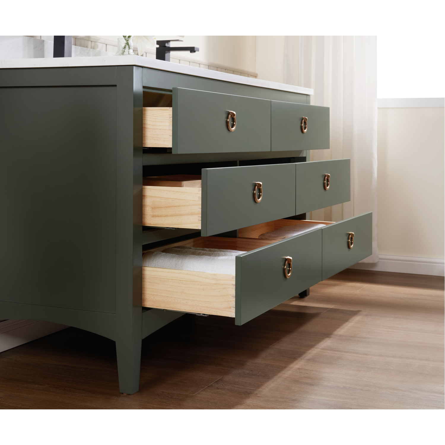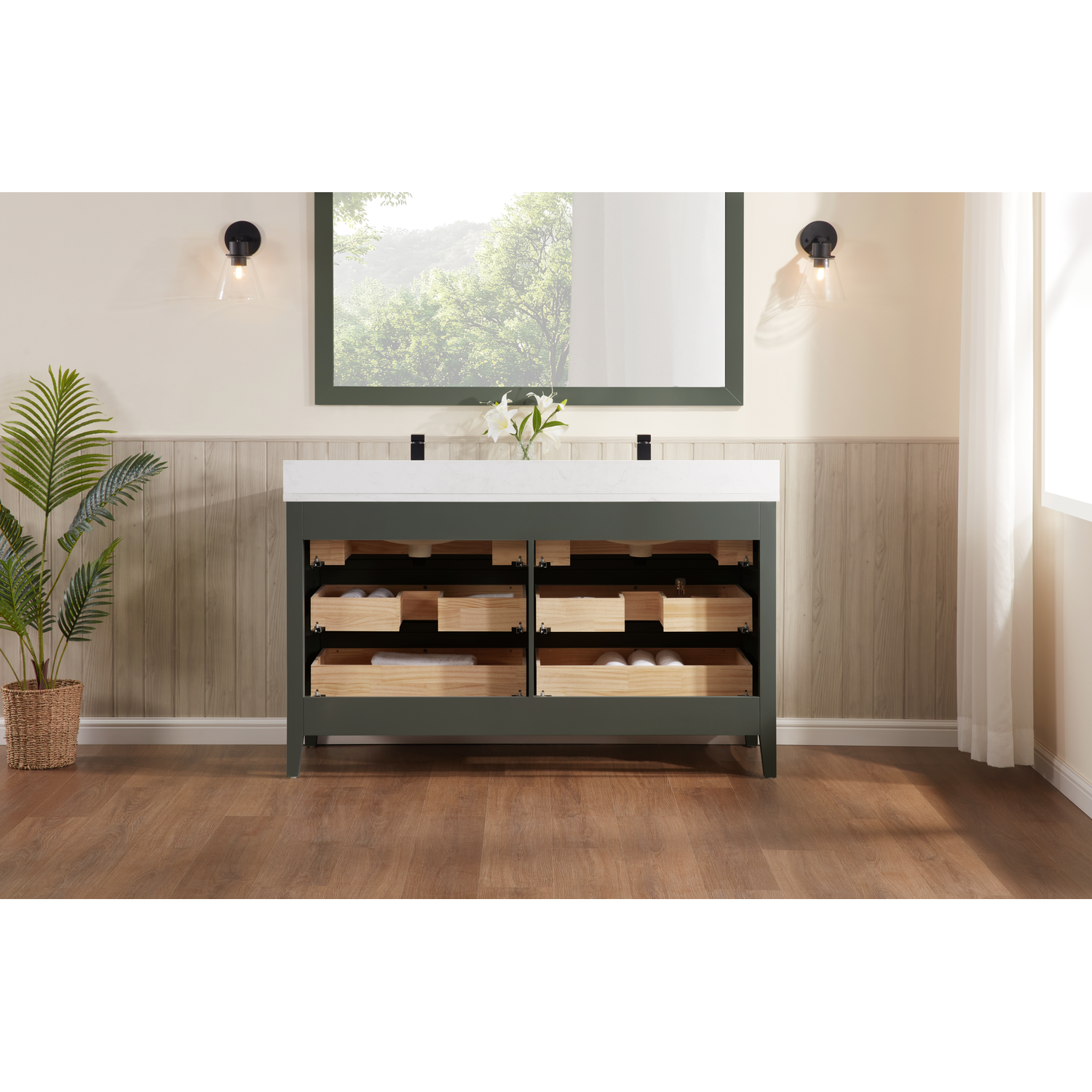 Crafted from solid wood, our 60" Timeless Vanity offers durability and elegance. With a selection of colors to choose from, this double sink vanity adds a timeless touch to any bathroom. Enjoy the benefits of long-lasting quality and customizable style.
